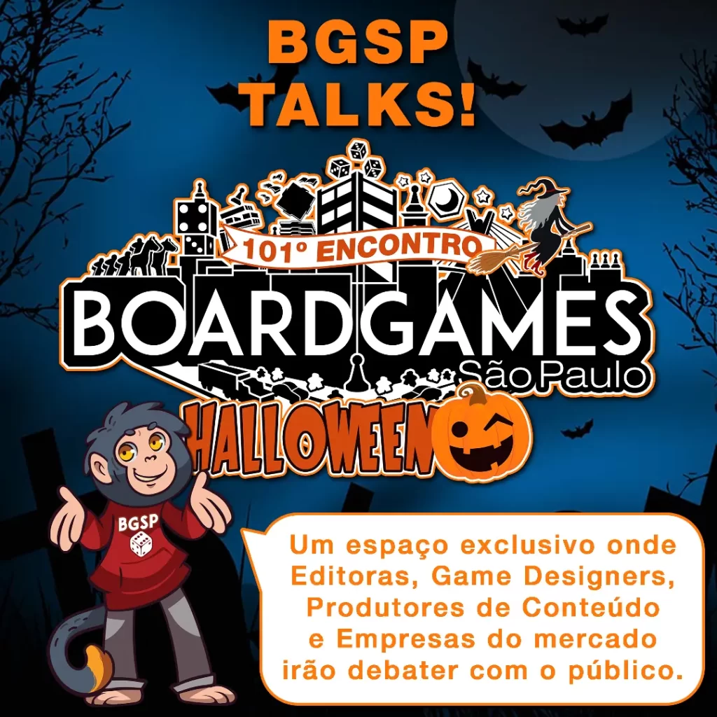 📌 O BGSP Talks! é um espaço exclusivo dentro dos nossos encontros, onde Editoras, Game Designers, Produtores de Conteúdo e outras Empresas do mercado de Jogos de Tabuleiros Modernos irão levantar e debater com o público, grandes questões que cercam nosso hobby!