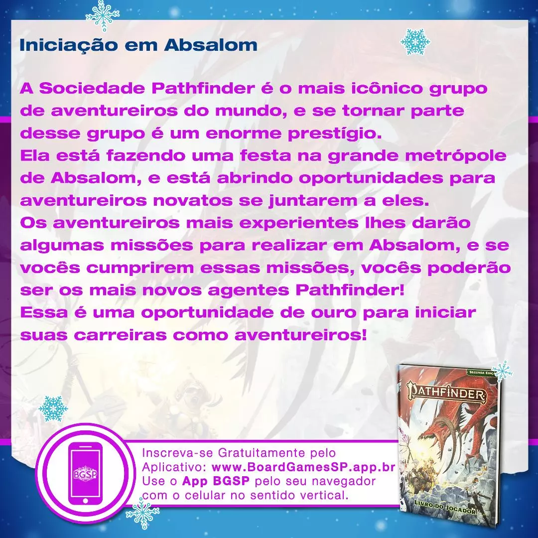 Faça sua inscrição antecipadamente pelo Aplicativo do BGSP no ícone de Mesas de RPG.